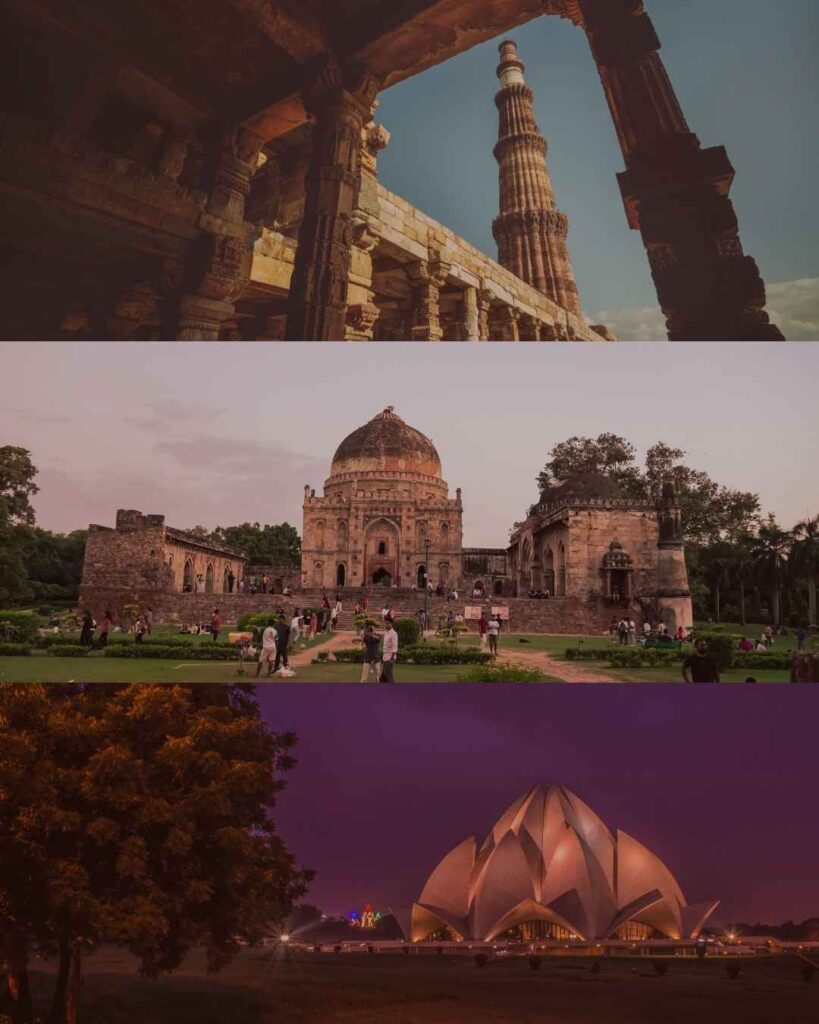 Continue your tour with a visit to the serene and architecturally stunning Lotus Temple, celebrated for its lotus-shaped design and peaceful ambiance, welcoming visitors of all faiths. Conclude your sightseeing at the historic Qutub Minar, India’s tallest brick minaret, set amidst a complex of ancient monuments reflecting the depth of Delhi’s heritage.